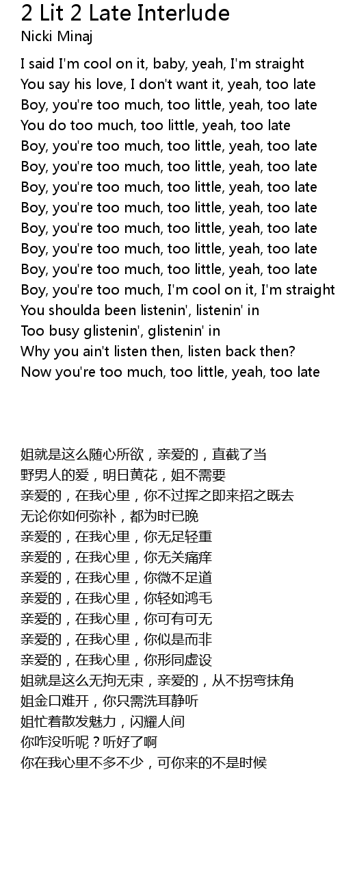 Now you're too much, too little, yeah, too late |