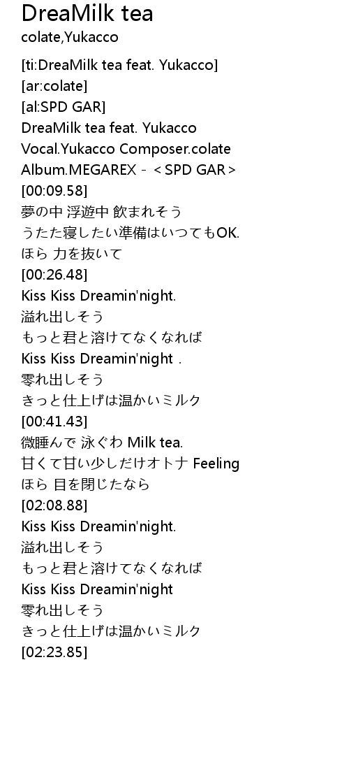 | [00:00.44] | DreaMilk tea feat. Yukacco |