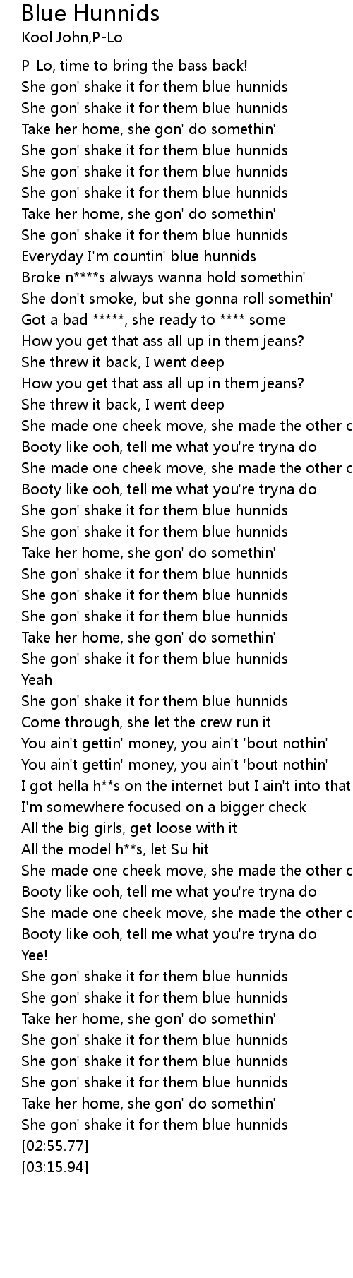 | [00:37.70] | She gon' shake it for them blue hunnids |