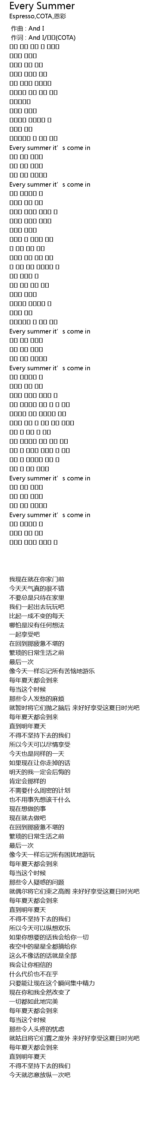 | [00:36.960] | Every summer it' s come in |