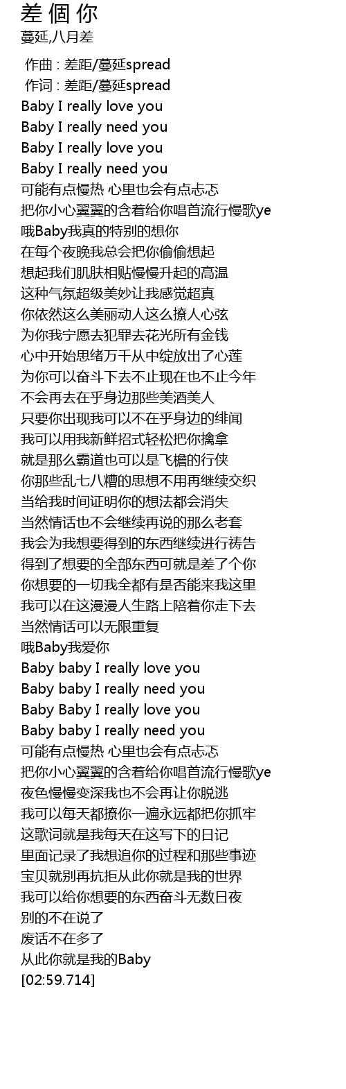 | [00:41.164] | 哦Baby我真的特别的想你 |