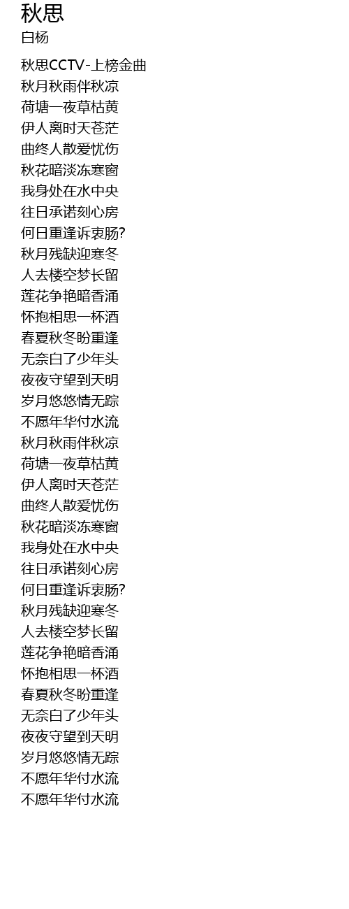 | [00:03.73] | 秋思CCTV-上榜金曲 |