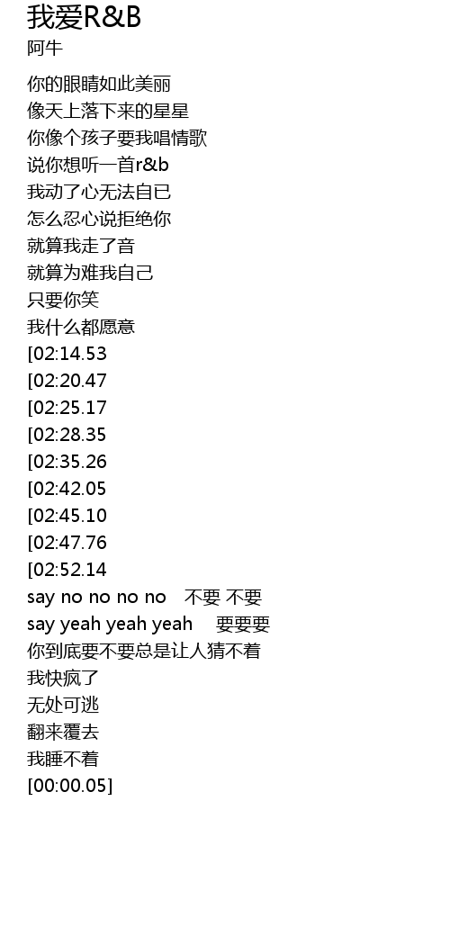 | [01:58.00] | say yeah yeah yeah yao yao yao |