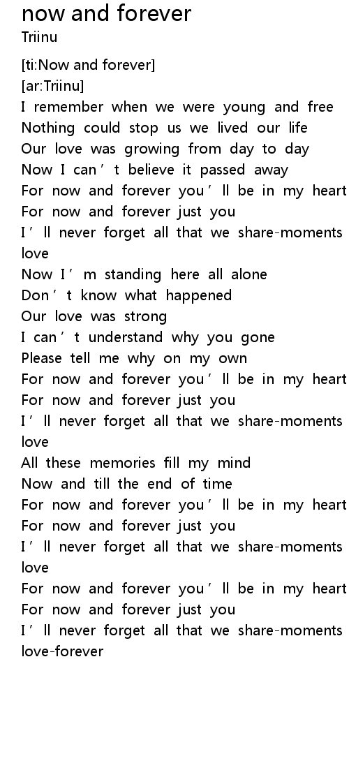 | [00:39.324] | For now and forever you ' ll be in my heart |
