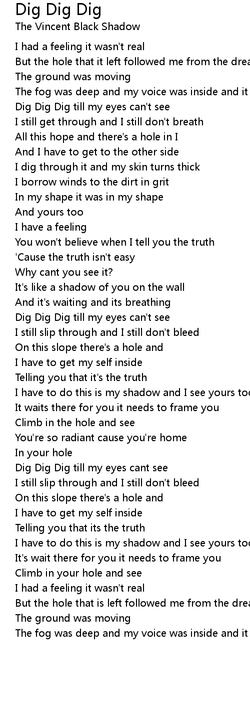 Dig Dig Dig till my eyes cant see |
