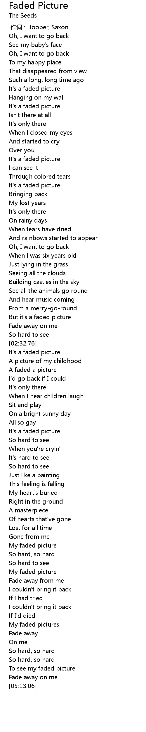 | [05:04.24] | To see my faded picture |