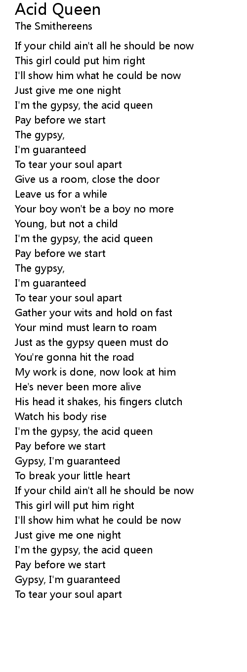 I'm the gypsy, the acid queen |