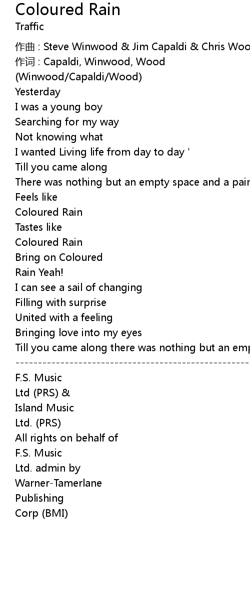 | 作词 : Capaldi, Winwood, Wood | |