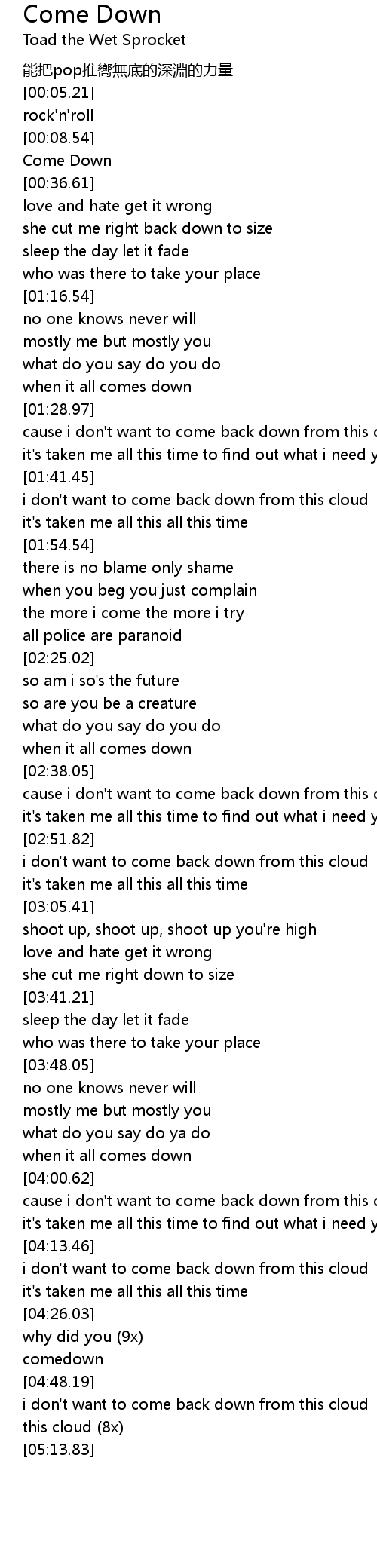 | [04:50.33] | i don' t want to come back down from this cloud |