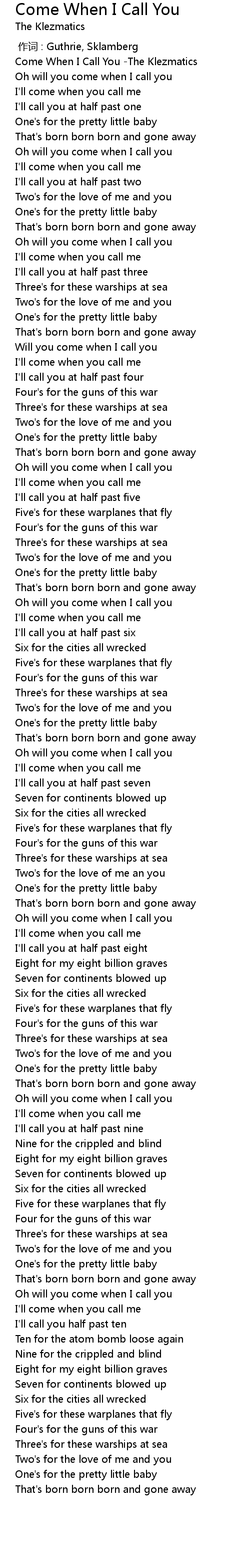| [00:00.921] | Come When I Call You -The Klezmatics |