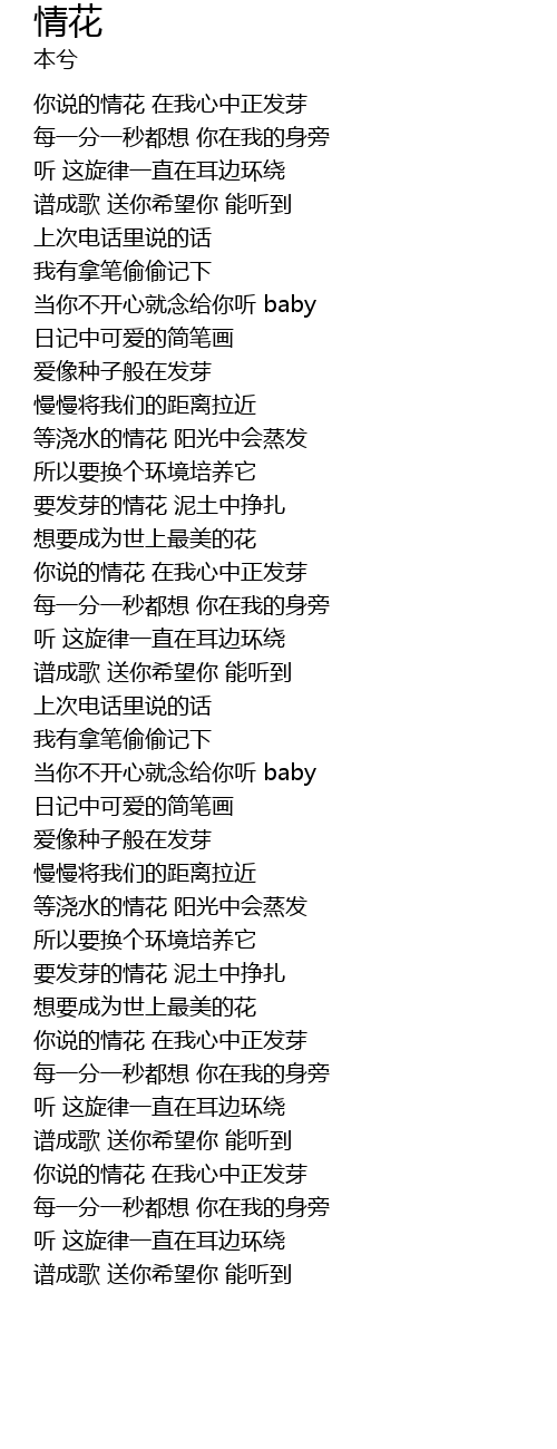 | [00:21.540] | 你说的情花 在我心中正发芽 |