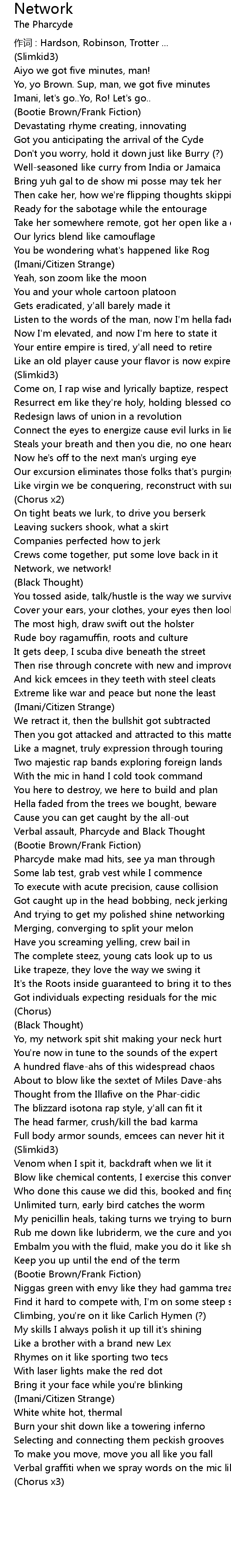 | Yo, my network spit shit making your neck hurt | |