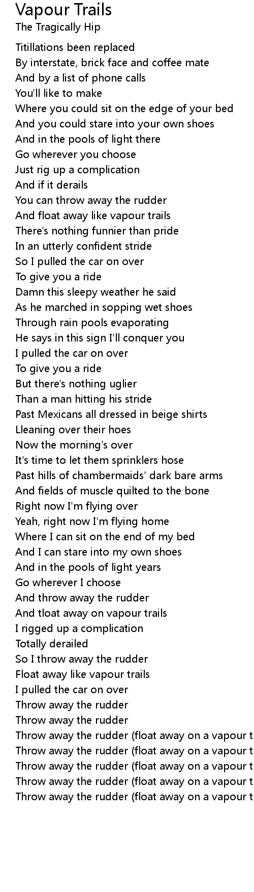 Throw away the rudder (float away on a vapour trail) |