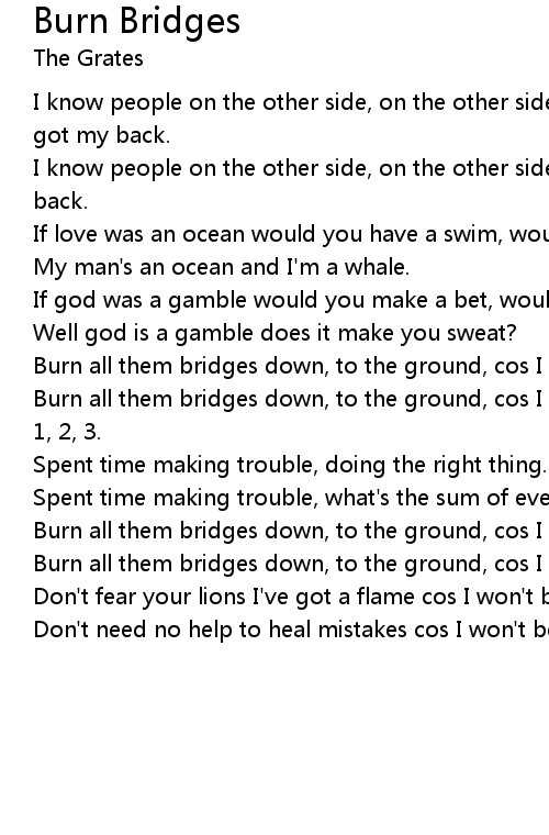 Burn all them bridges down, to the ground, cos I won't be coming this way again. |