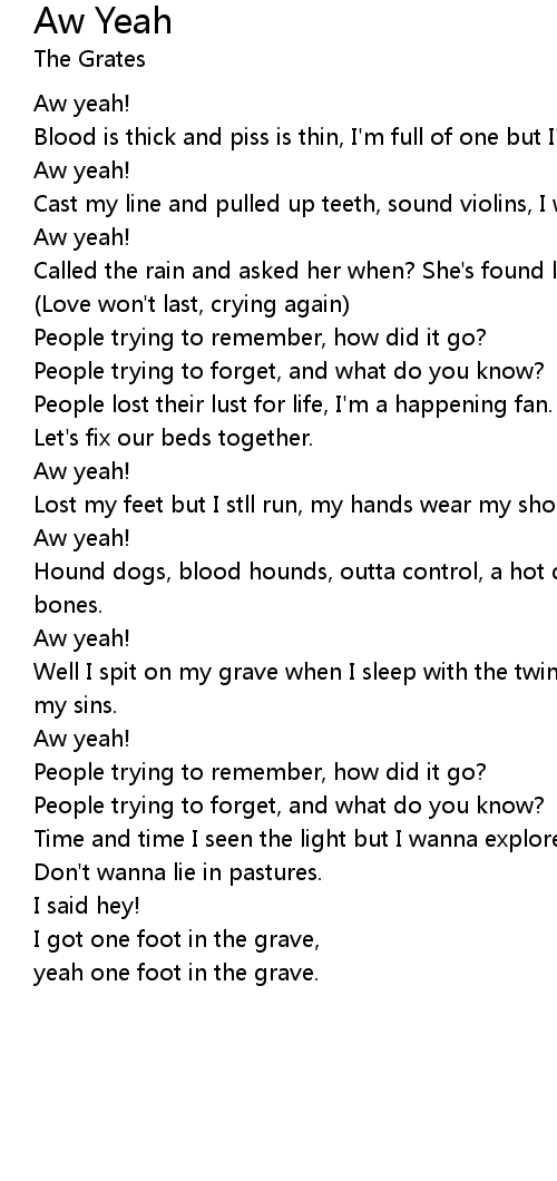Well I spit on my grave when I sleep with the twins, one's for loving, one eats my sins. |