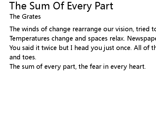 | Song | The Sum Of Every Part |