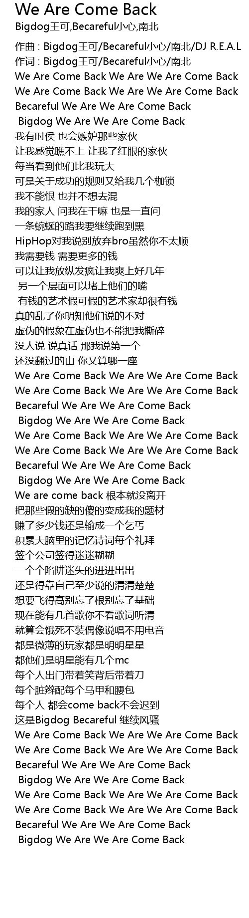 | 作词 : Bigdog王可/Becareful小心/南北 | |