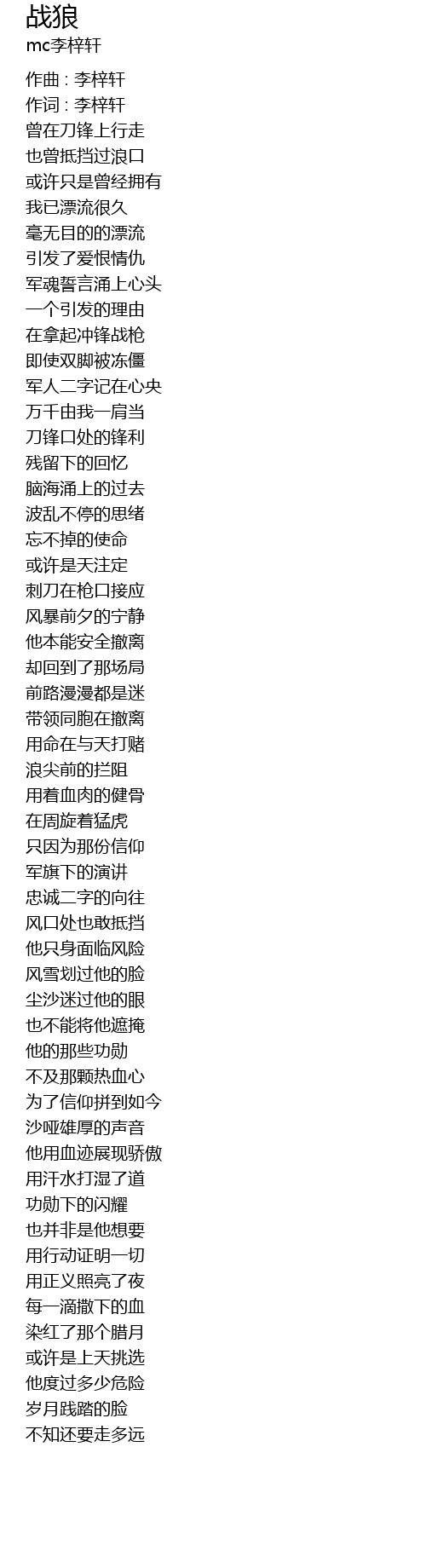 | 作词 : 李梓轩 | |