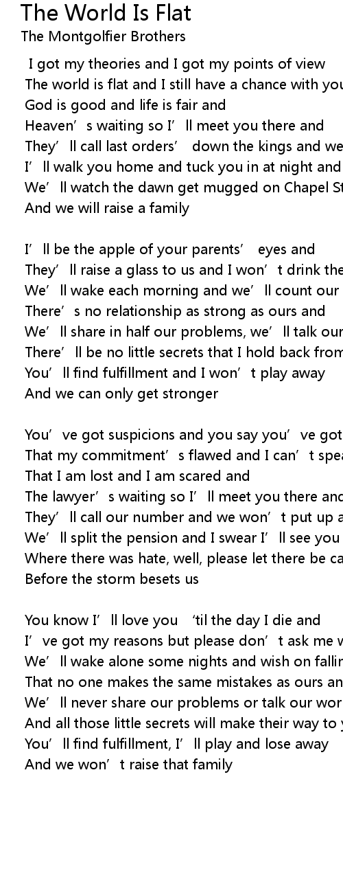 | The world is flat and I still have a chance with you | |