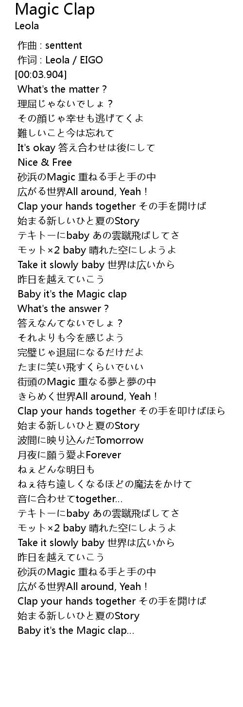 | [03:01.582] | Baby it's the Magic clap… |