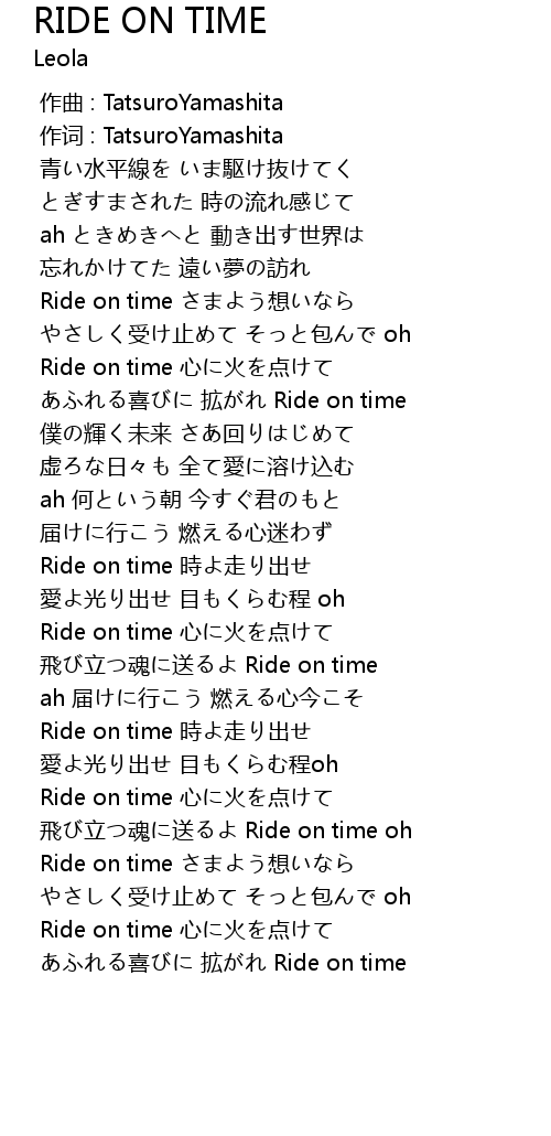 | [02:09.744] | 飛び立つ魂に送るよ Ride on time |