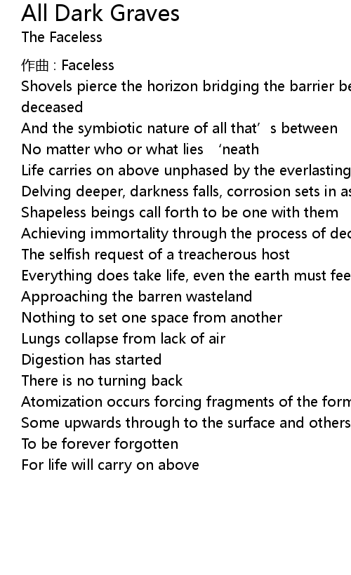 | Shovels pierce the horizon bridging the barrier between what' s and what' s deceased | |