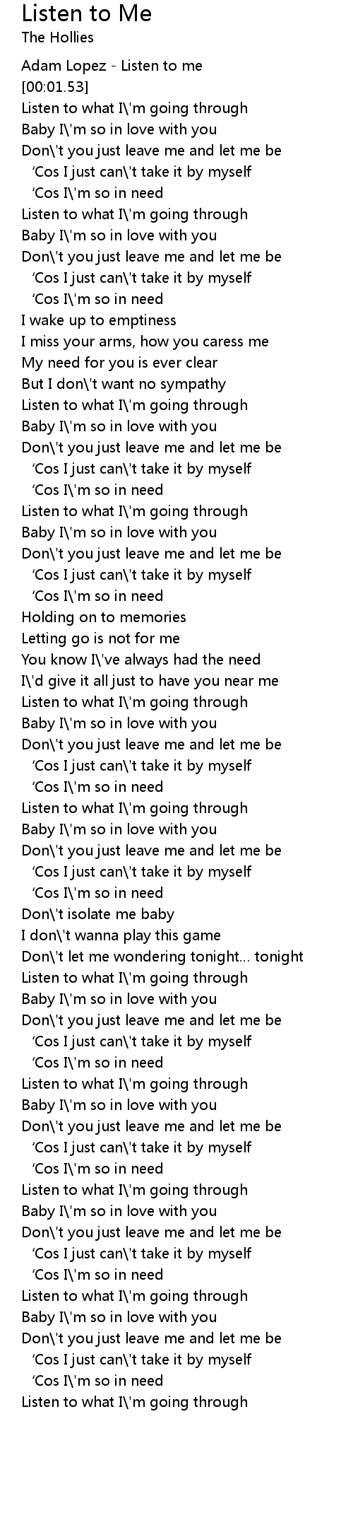 | [02:03.85] | Listen to what I\'m going through |