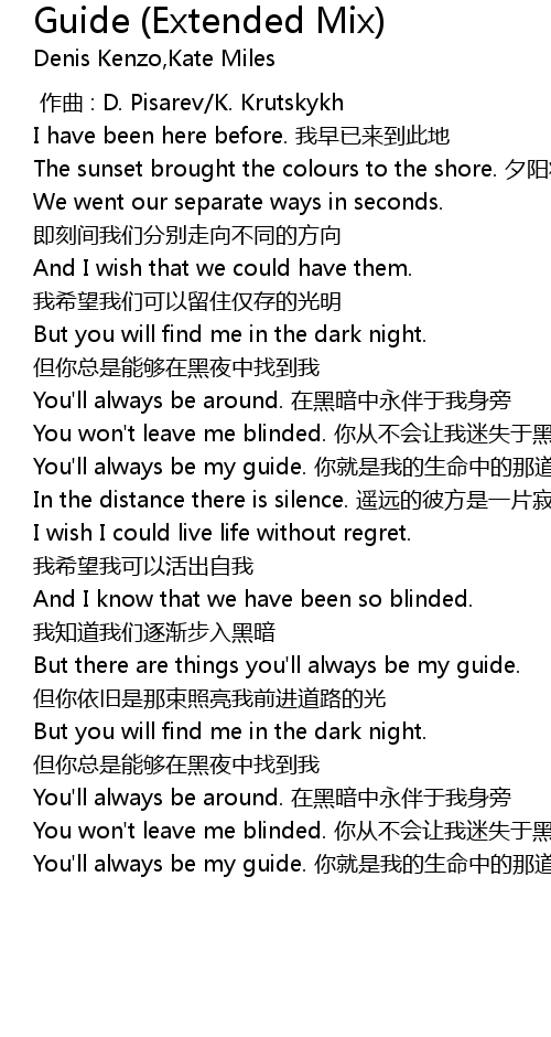 | [01:56.68] | You'll always be my guide. 你就是我的生命中的那道光 |