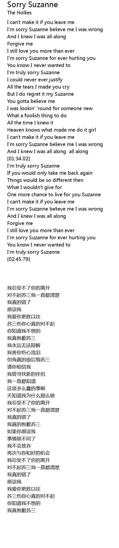 I'm sorry Suzanne for ever hurting you |
