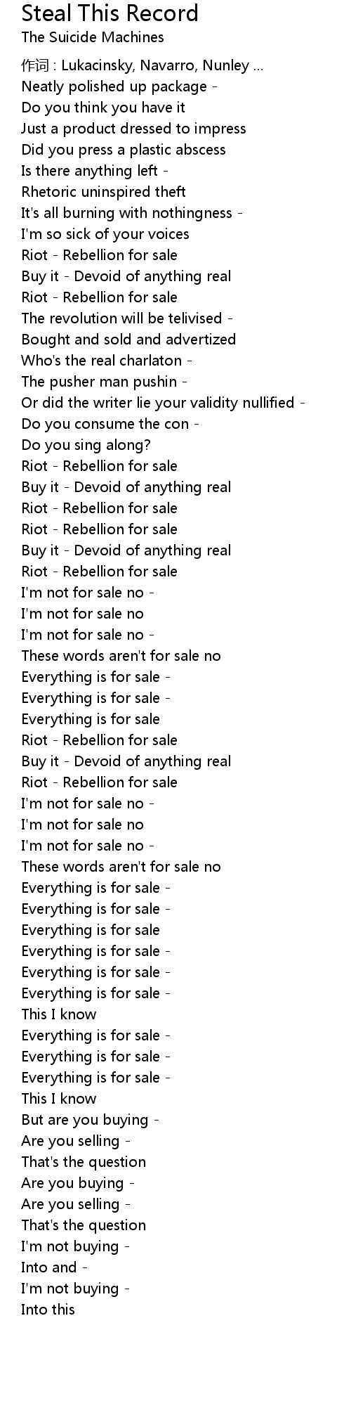 | Song | Steal This Record |