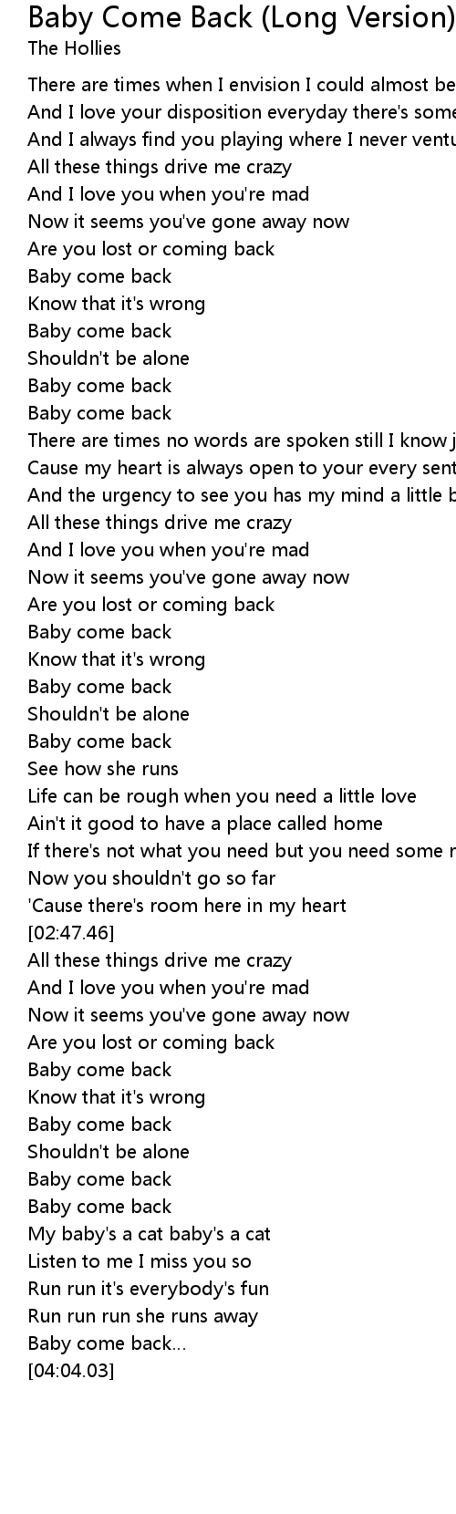 | [01:20.50] | Baby come back |