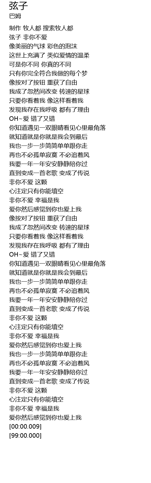 | [00:08.66] | 弦子 非你不爱 |
