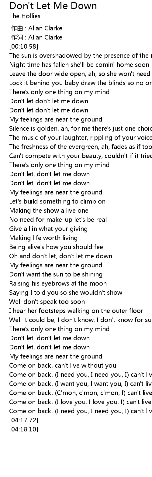 | [03:18.02] | Don' t let, don' t let me down |