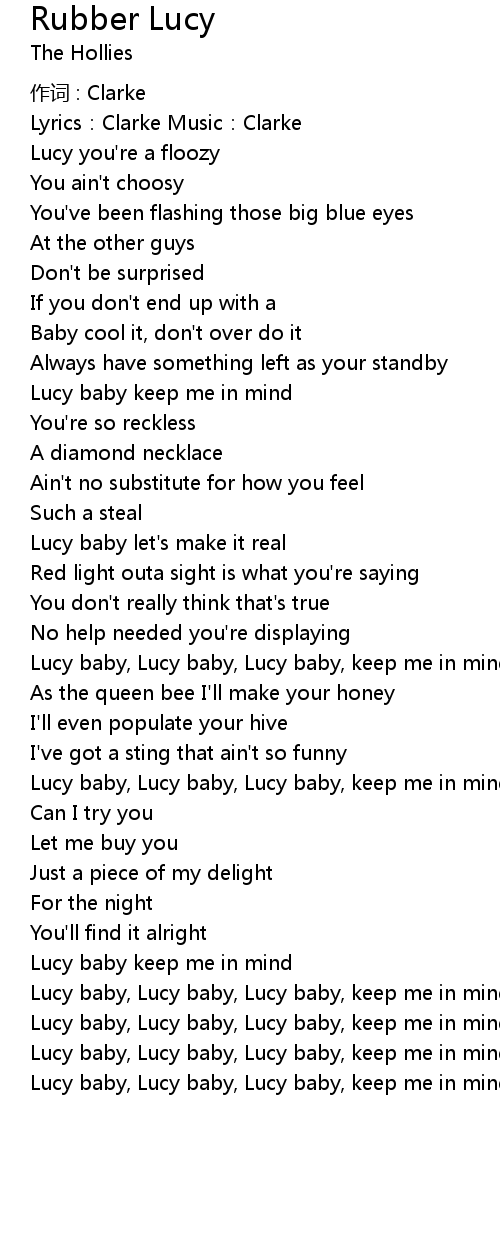 | Lucy baby, Lucy baby, Lucy baby, keep me in mind |
