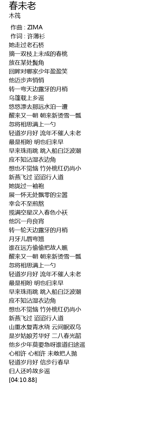 | [03:18.75] | 新燕飞过 迢迢行人道 |