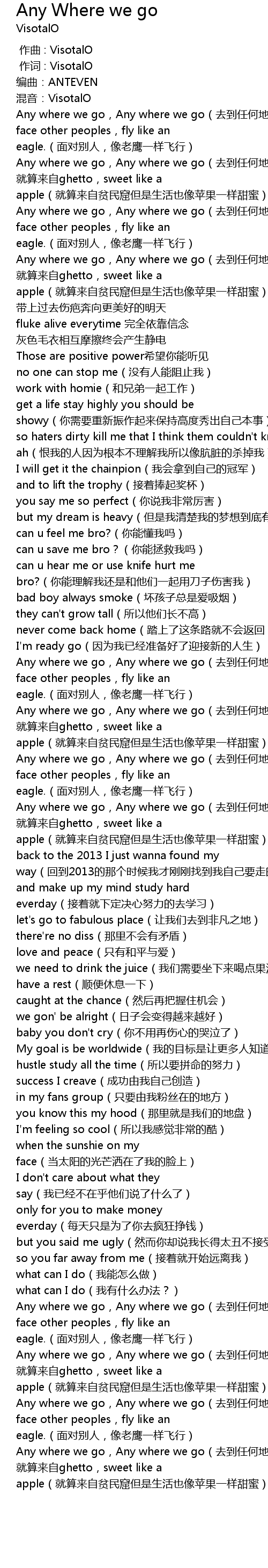| [00:19.110] | Any where we go, Any where we go qu dao ren he di fang |
