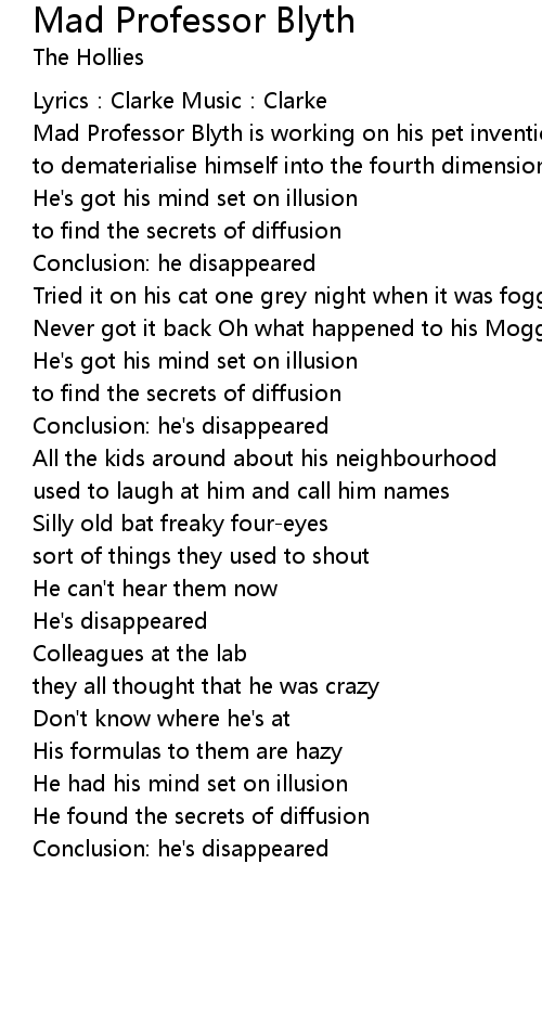 | Song | Mad Professor Blyth |
