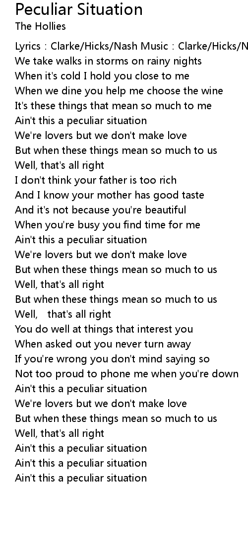 | Ain' t this a peculiar situation |