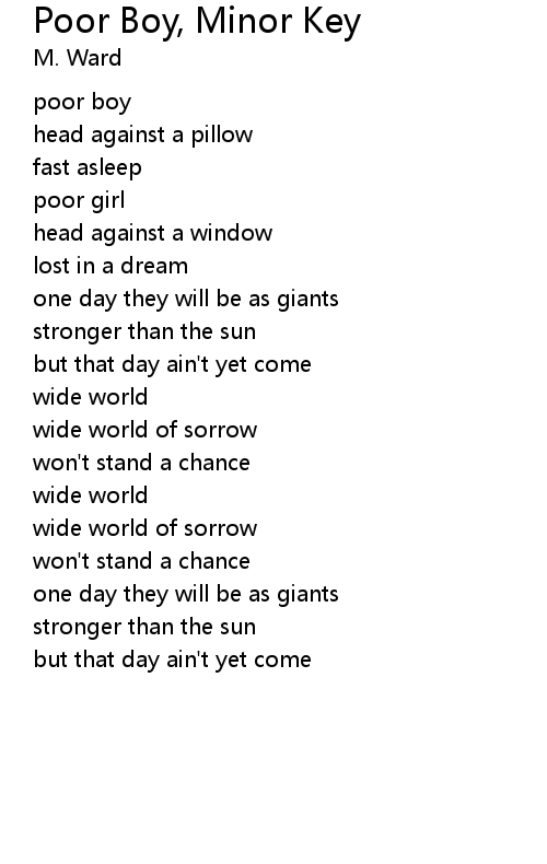 | Song | Poor Boy, Minor Key |