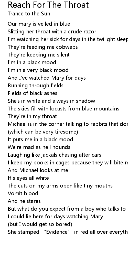 | Song | Reach For The Throat |