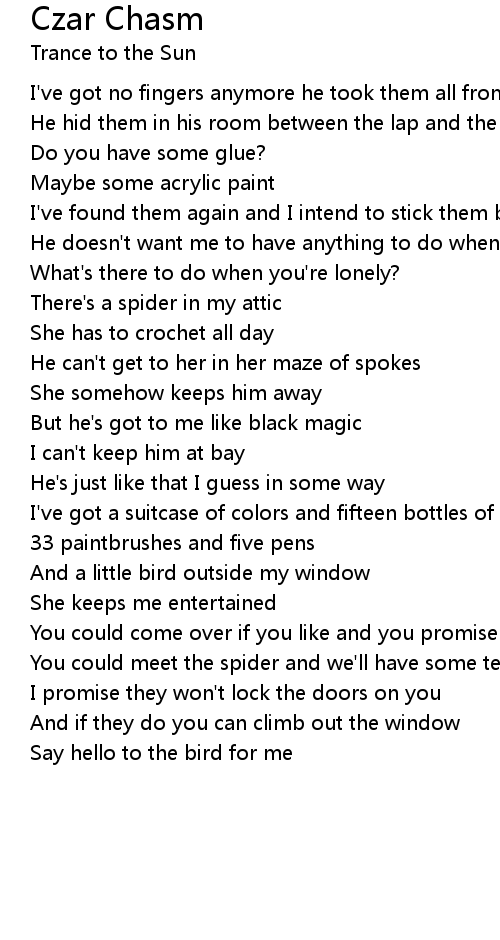 I've got no fingers anymore he took them all from me |