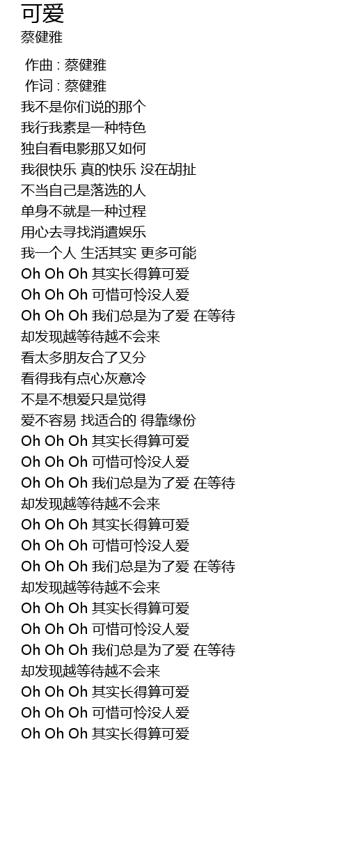 | [01:14.46] | Oh Oh Oh 其实长得算可爱 |