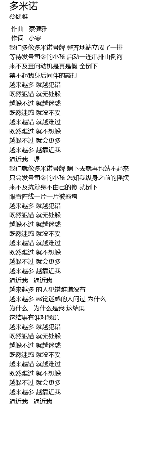 | [01:36.01] | 我们就像多米诺骨牌 躺下去就再也站不起来 |