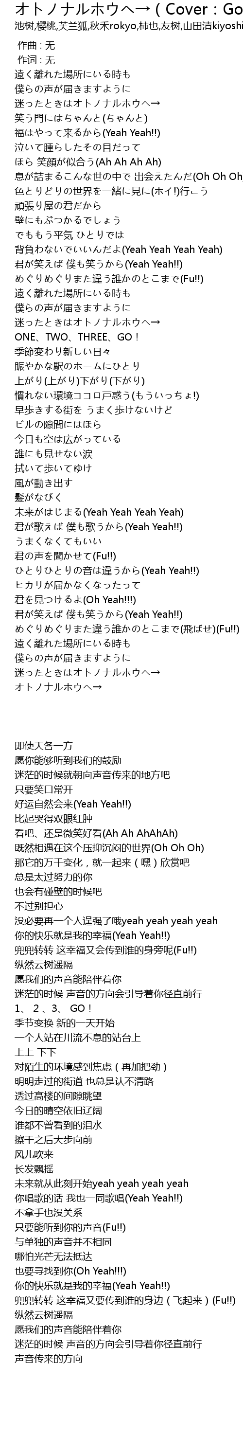 | [02:51.54] | めぐりめぐりまた違う誰かのとこまで(飛ばせ)(Fu!!) |