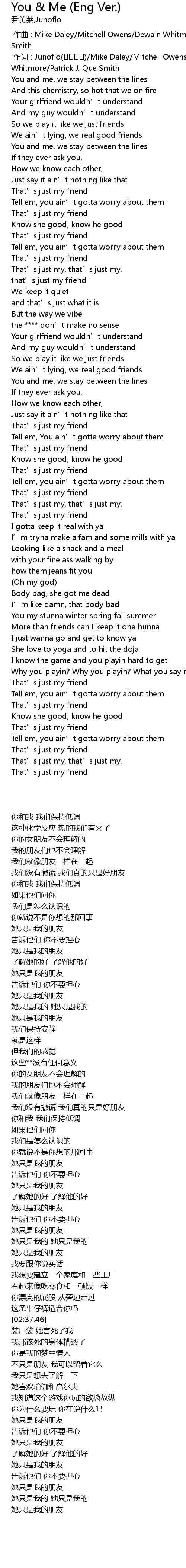 | [01:38.23] | So we play it like we just friends |