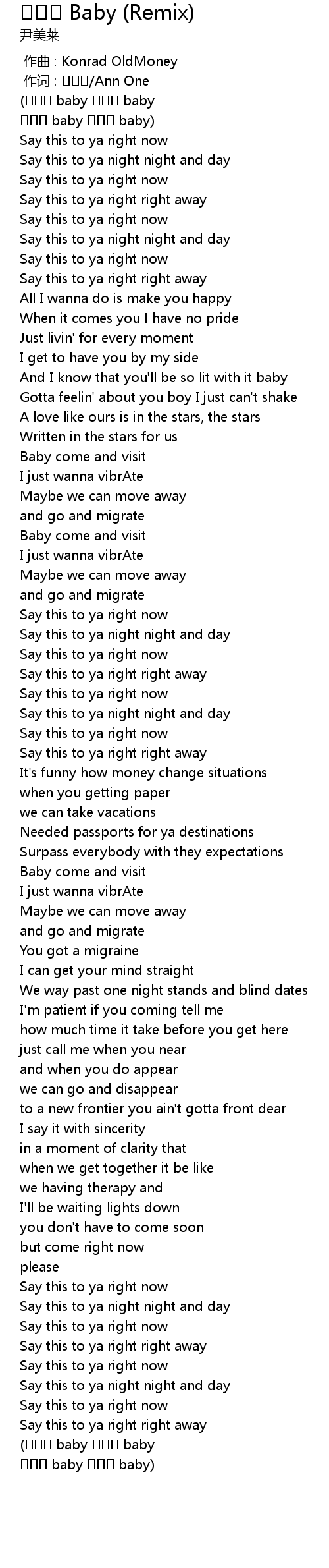 | [00:02.41] | (잠깐만 baby 잠깐만 baby |