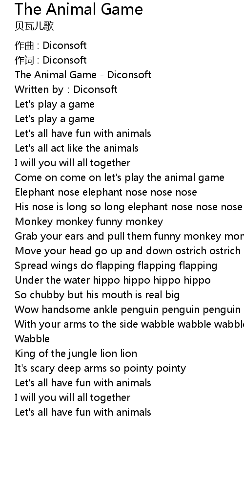 | Come on come on let' s play the animal game | |