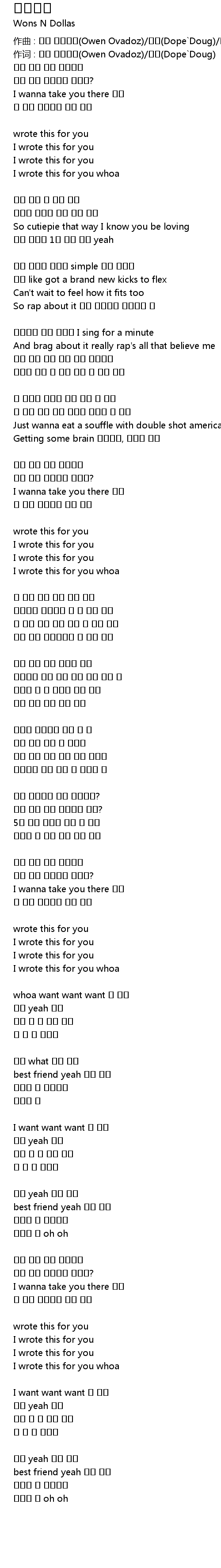 | 作词 : 오왼 오바도즈(Owen Ovadoz)/돕덕(Dope`Doug) | |