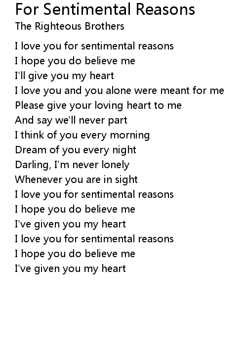 | I love you for sentimental reasons | |