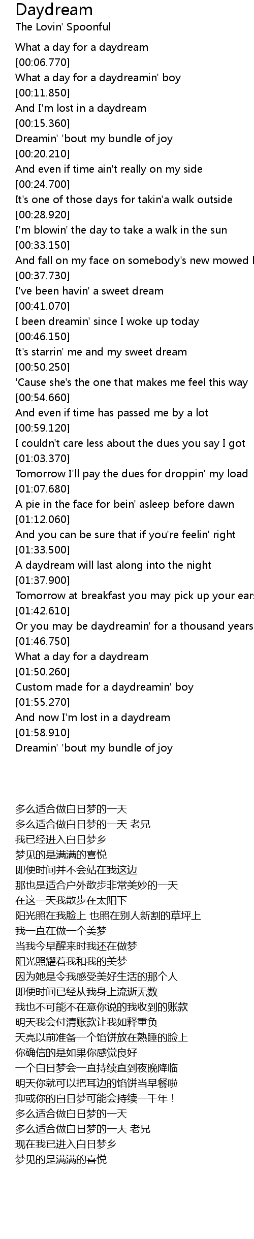 And now I'm lost in a daydream |